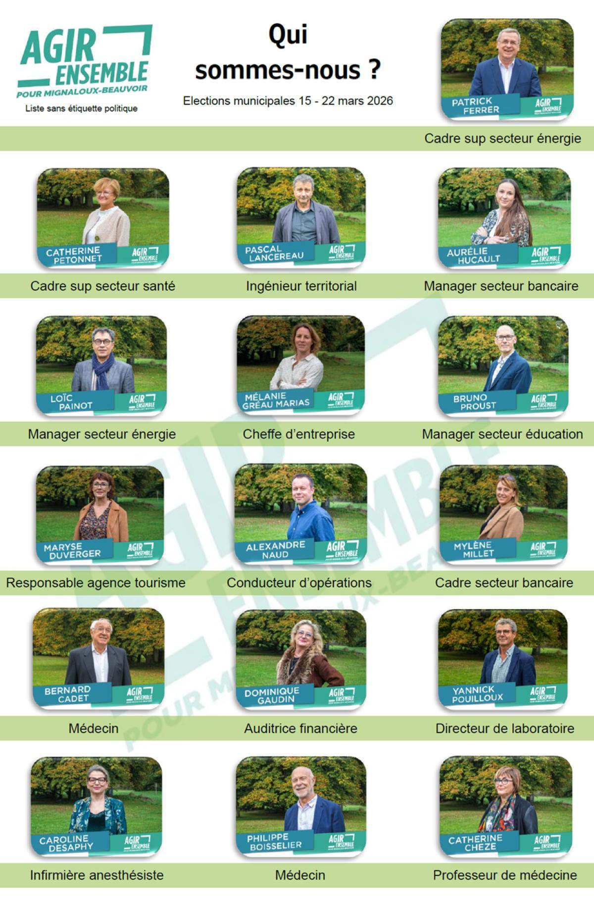 Toute l’équipe d’AGIR ENSEMBLE POUR MIGNALOUX-BEAUVOIR est prête. Avec vous, par vous et pour vous.